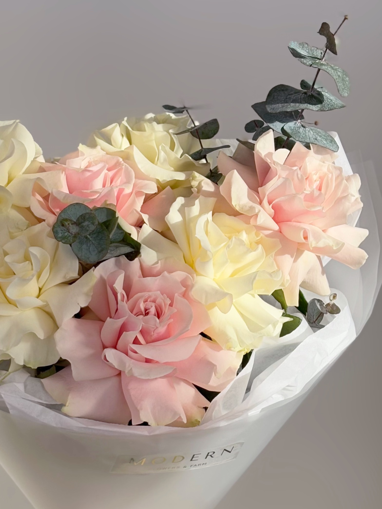 БУКЕТ ФРАНЦУЗСКИХ РОЗ И ЭВКАЛИПТА