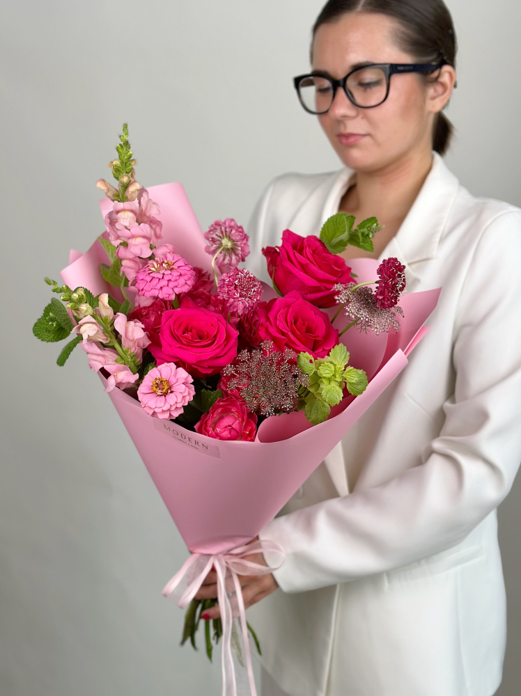 Купить букет с доставкой по Москве и МКАД легко в магазине Modern Flowers & Farm — большой выбор композиций в каталоге, оформление заявки в 3 клика с 9:00 до 21:00, бережная транспортировка заказа. Штатные курьеры привозят цветы от 2 часов.