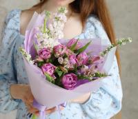 БУКЕТ ИЗ СТОЙКИХ ЦВЕТОВ В ФИОЛЕТОВОМ ОТТЕНКЕ