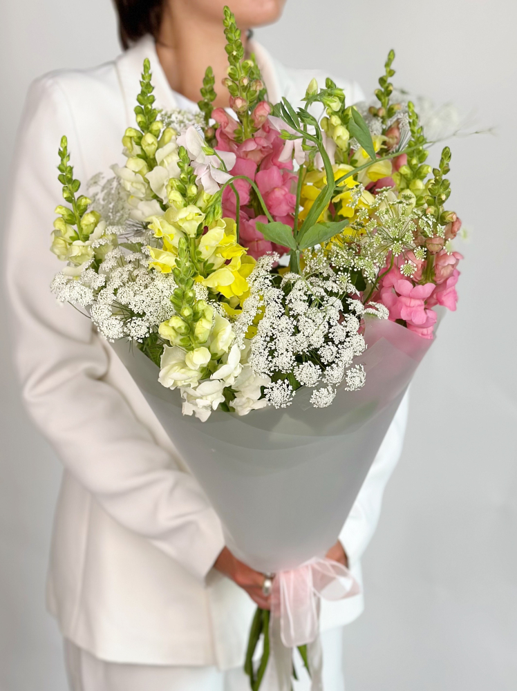 БУКЕТ С ЛЬВИНЫМ ЗЕВОМ И ТЫСЯЧЕЛИСТНИКОМ