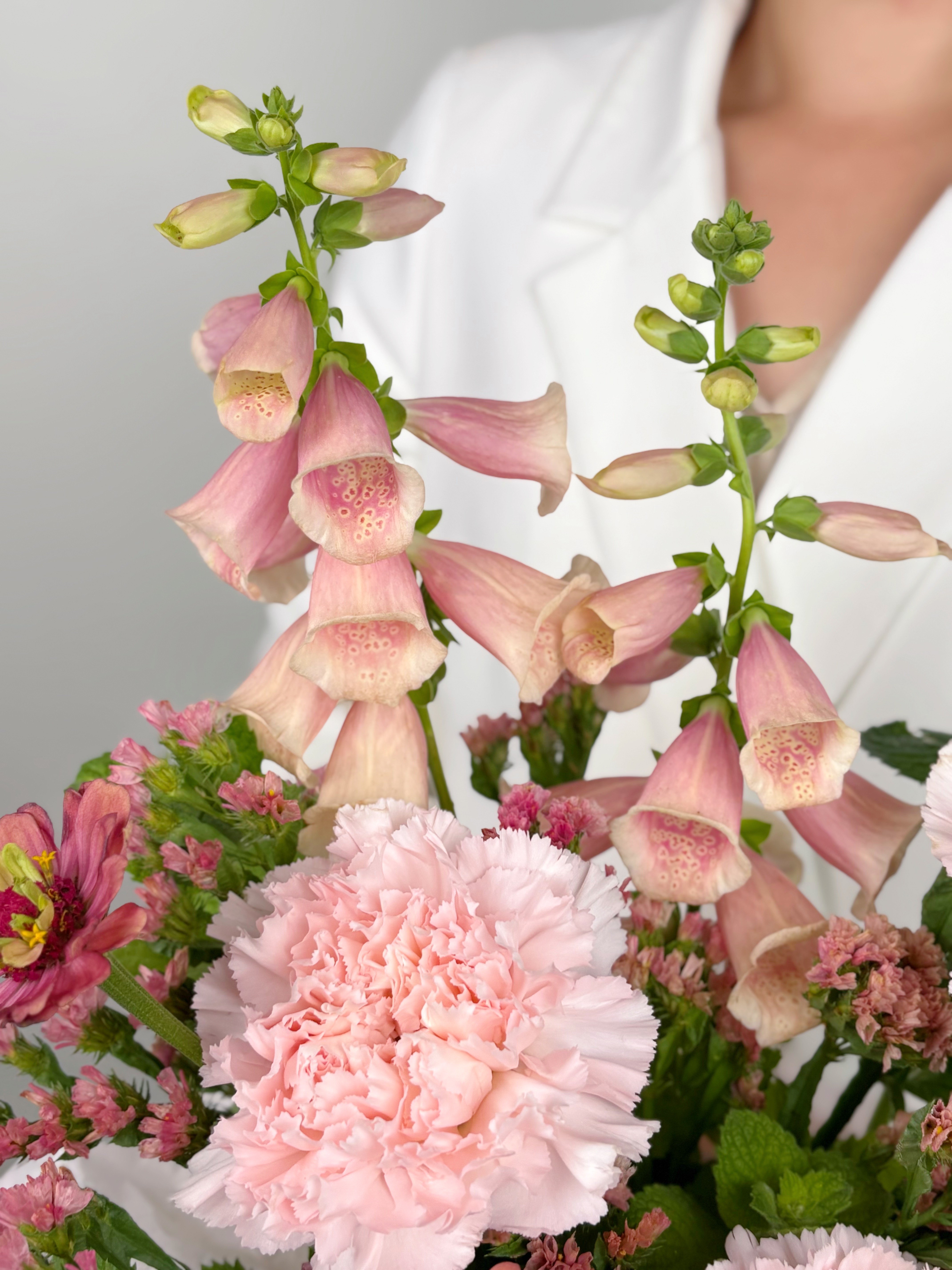 КОМПОЗИЦИЯ В ШЛЯПНОЙ КОРОБКЕ С НАПЕРСТЯНКОЙ И ДИАНТУСОМ