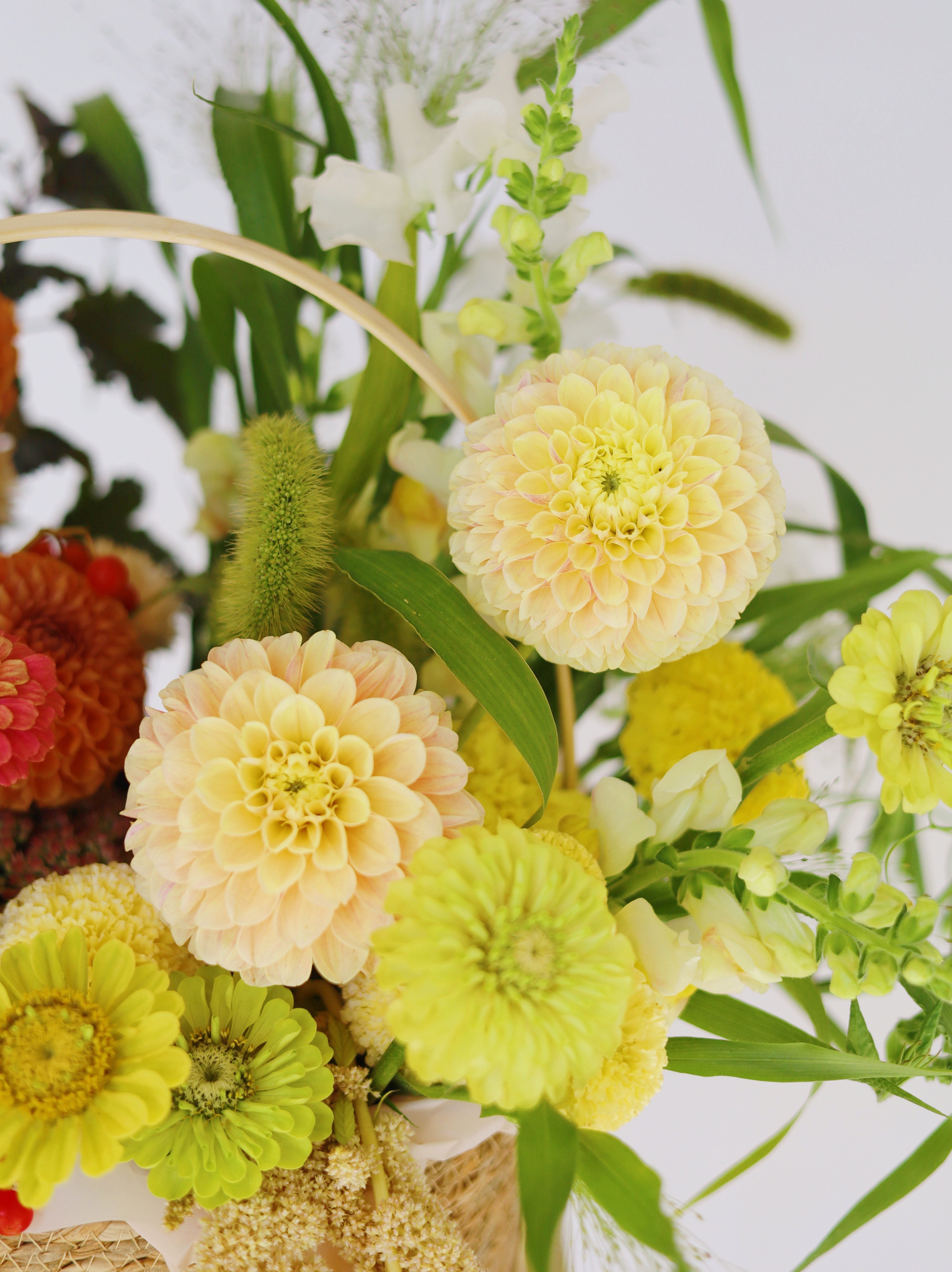 Величественная корзина с георгинами, амарантом и циннией