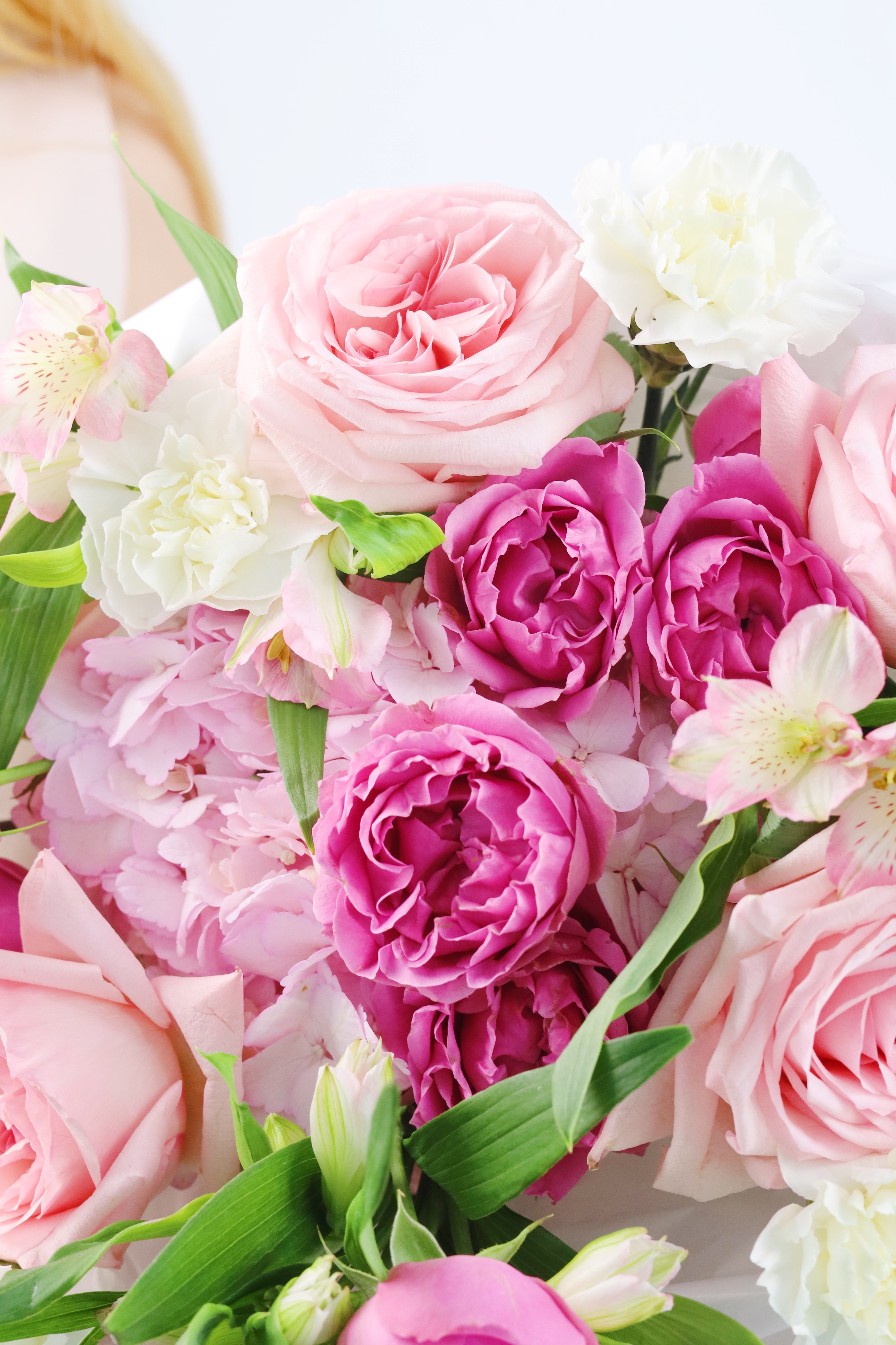 КРУГЛЫЙ БУКЕТ С ПИОНОВИДНЫМИ РОЗАМИ