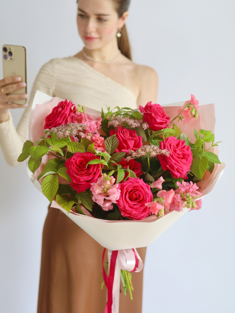 Огромная охапка роз производит wow-эффект. Подарите 51 или 101 цветок в крафте или композиции в корзине — получатель запомнит такой сюрприз надолго.