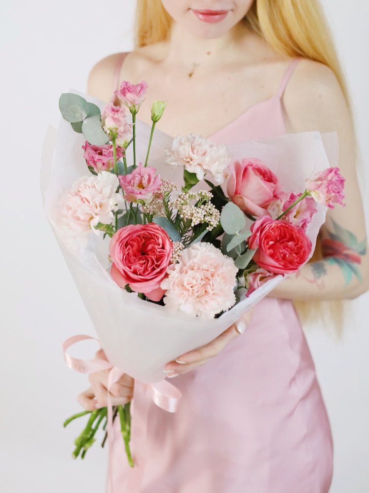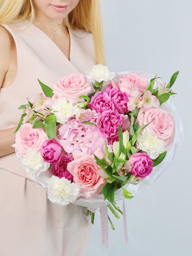 Сорта пионовидных роз в элегантных букетах магазина Modern Flowers & Farm в Москве