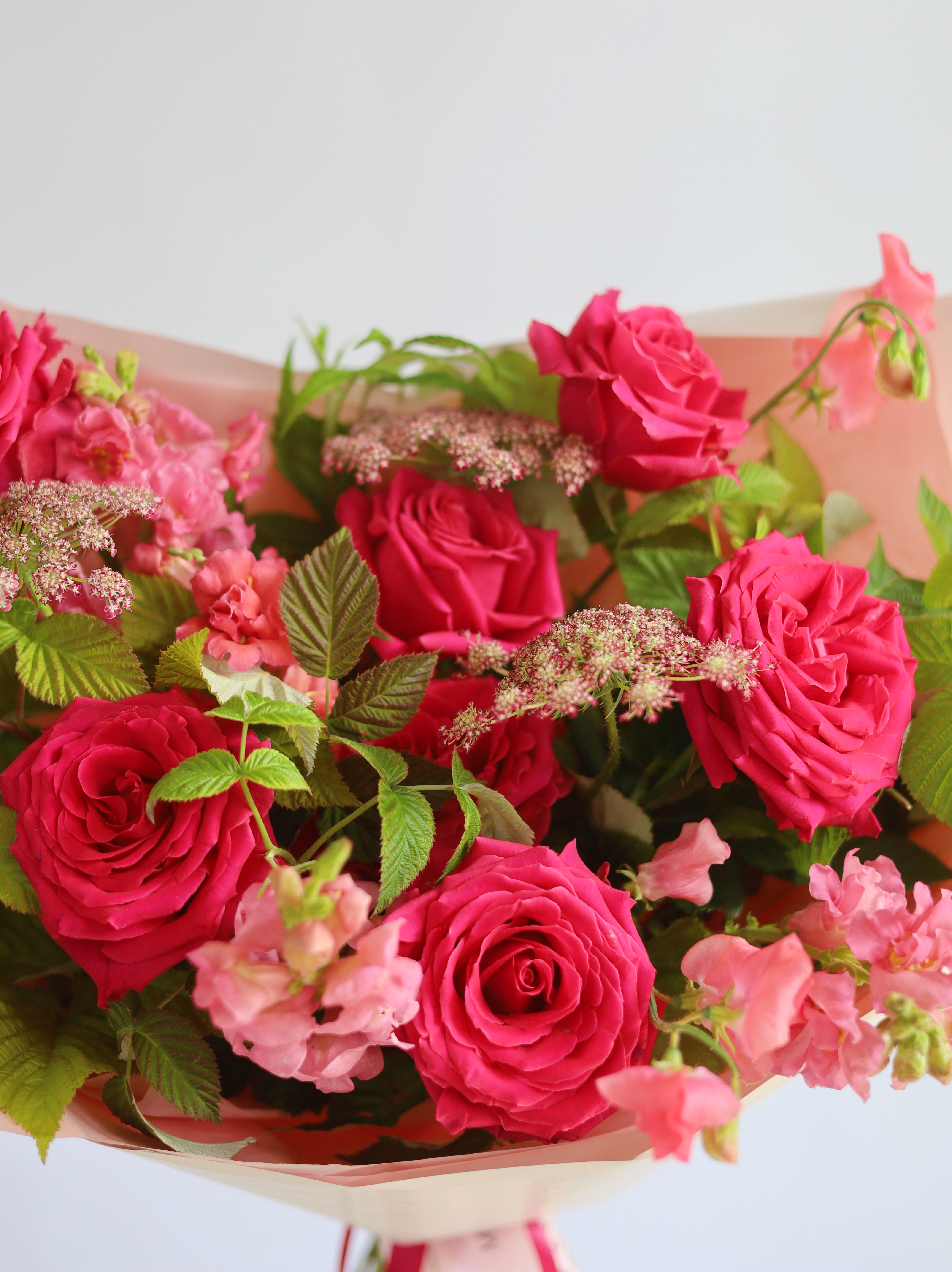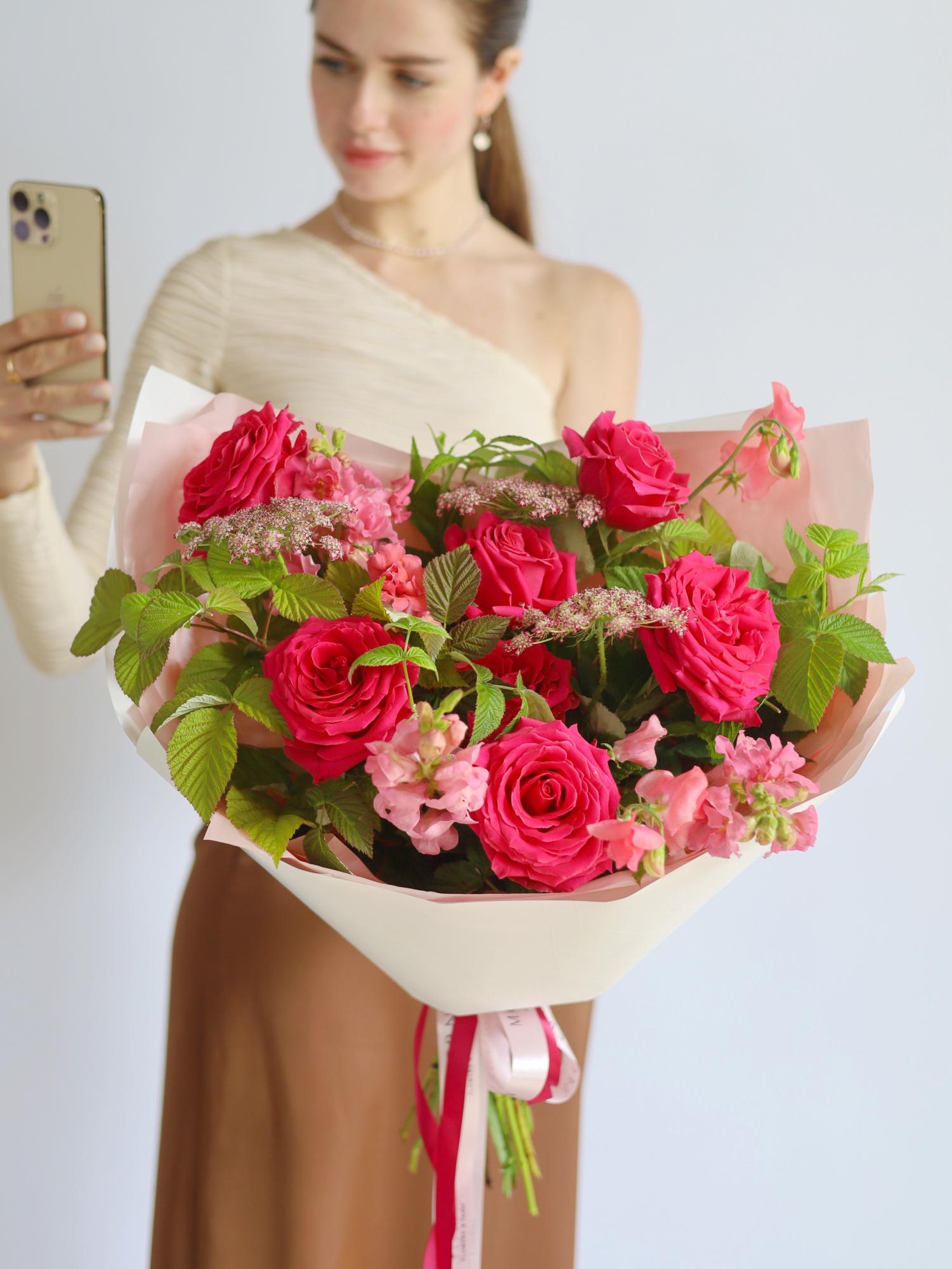 —ЯРКИЙ БУКЕТ С ПИОНОВИДНОЙ РОЗОЙ И МАЛИНОЙ